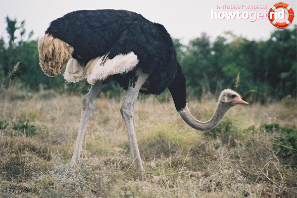 - Те са много грижовни родители и защитават щрауса от хищници.В случай на опасност, възрастен се преструва, че е ранен, за да вземе хищник колкото е възможно повече. И тогава тя бързо избяга от него. По това време други птици защитават пилетата.