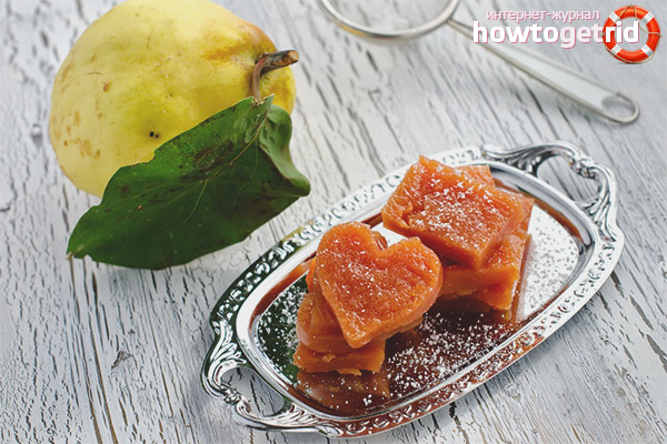 Вкусни и дюля десерти: marshmallow, желе, сладко. Те могат да бъдат варени на фруктоза, с добавяне на мед или синтетични захарни заместители, или смесени с други плодове и плодове. Природните сладки от дюля са много полезни за стомашно-чревния тракт: премахват шлаките, нормализират абсорбцията, очистват тялото на токсините, стимулират правилното функциониране на черния дроб, намаляват образуването на газ и задоволяват глада, което е много важно за хормоналните нарушения.