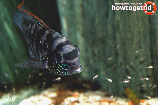 За хвърляне на хайвера, подходяща вода с рН от около 7 и температурен режим със знаци от около 25 градуса. След като жената отлага яйцата, мъжът се занимава със защитата на бъдещите потомци. Те се смятат за добри родители, които много внимателно растат. Artemia nauplii и други големи фуражи се използват за хранене на потомството.