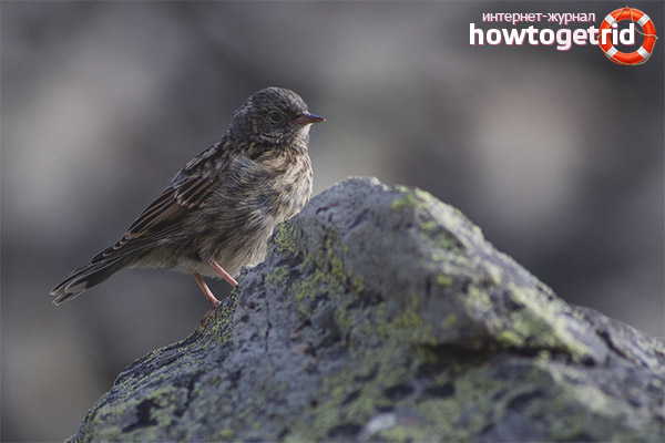 Птицата Alpine Accenturus е малка по размер, подобно на всички други видове пасерини. На латиница името на този вид звучи като Prunella collaris.