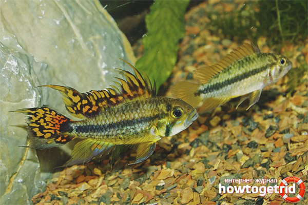 За аквариумната риба, наречена "какадио аписстограма", можете да гледате часове, животът ви е толкова интересен. А комбинацията от цветовата палитра е много интересно за нея и мисълта произтича неволно - дали тя е прототип на Златната рибка от приказката Пушкин? Вярно е, че неговото местообитание не е дъното на морето, а тихи, плитки реки или заливи, потоци и вдлъбнатини, които се намират в тропиците на Колумбия, Бразилия и други страни от Южна Америка. Тези риби най-често предпочитат места със слаб ток или застояла вода, са близо до камъни, където винаги можете да се скриете, както и в близост до райони, където дъното е меко и има много растения.