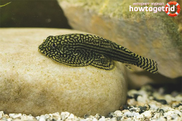 В природата, нейната храна е разнообразна водорасли, както и микроорганизми. Хранете го, когато се съхранява в аквариума, трябва да бъде жива храна или водорасли. Живите храни се продават замръзнали. За да бъде здрава рибата, тя трябва да купува само висококачествена храна. В допълнение, зеленчуците трябва да присъстват в диетата, както и производителите на тръби, кръвоносните съдове и дафнията.