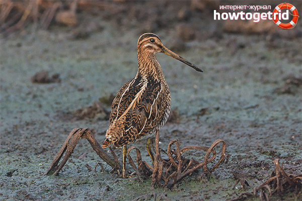 Snipe е добре разпознаваем. Тя може лесно да се идентифицира чрез дълъг, тесен и остър клюн. В структурата на анатомичната структура на човката е най-изявеният елемент. Често дължината му е една трета от цялото тяло. Кратките лапи подчертават асиметрията на тялото. За обикновения жител е много трудно да различи женската от мъжа. Един опитен орнитолог може да направи това.