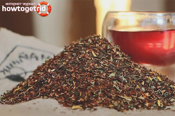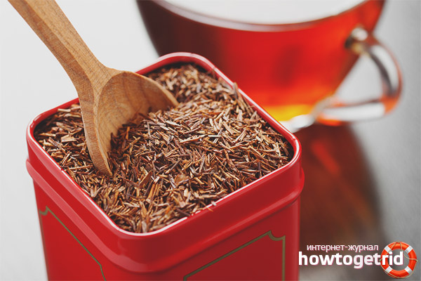 - За разлика от обикновения черен чай, Rooibos не съдържа кофеин и също има по-малко съдържание на определени киселини и тианин. Също така е известно, че растението има органична захар и е подходящо за диабетици. Следователно, тя може да се използва както от бременни жени, така и от хора с бъбречни проблеми.