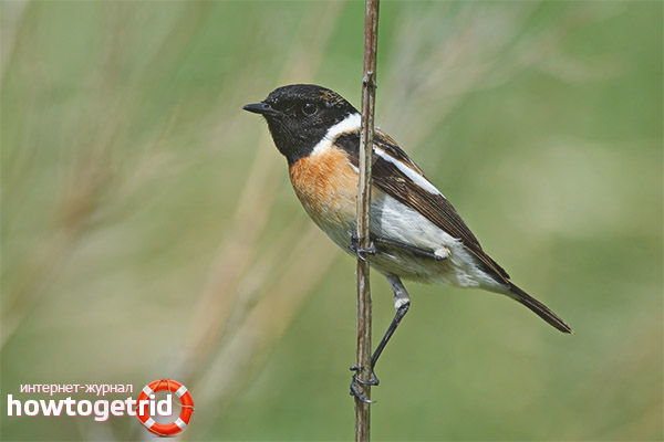 - Rubicola предпочита да живее в сухи райони, достатъчно запълнени със светлина. Мъжките от външните си данни се определят много просто. Те се характеризират с белезникав гръден кош и кестен. Главата е черна, позволявайки отделянето на този сорт, например от представители на ливадите. Женските, както и младите и отделни мъже в пролетното оперение, се различават от същата подобна светлинна зона над опашката и веждите на един и същ нюанс.