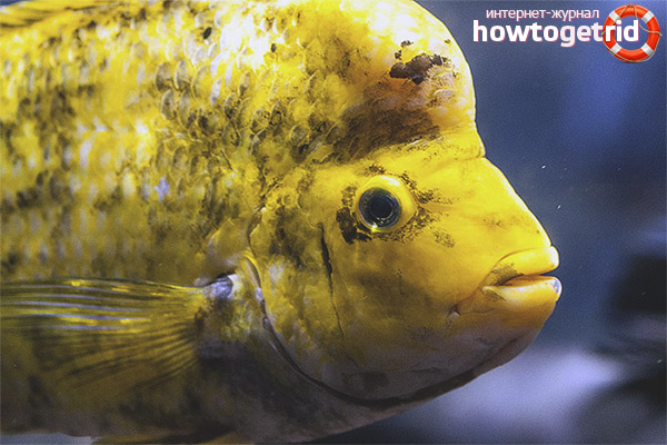 - Важно е да се осигурят риба с фибри, което предотвратява сериозни патологични промени. А именно, блокира образуването на лечебна рана върху главата на рибата. Tsikhlazoma умира от това, въпреки продължаващата терапия.