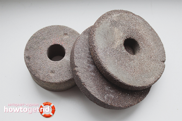 Beim Kauf eines Schleifsteins sollten Sie auf zwei verschiedene Seiten achten: Die eine sollte grob sein, mit sehr großen Körnern, die andere - homogener, mit meist kleinen.