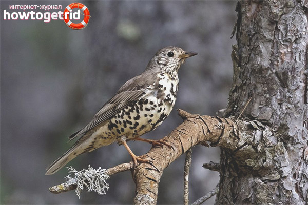 Както бе споменато по-горе - Deriaba е най-големият вид птици от семейството на дроздовете. Пералната рокля на птицата е сива, на корема има характерни тъмни петна. Когато една птица е във въздуха, можете да видите нейната вътрешност на крилото с бял цвят. Има представители на този вид почти на цялата територия на Централна Европа. Имайте предвид, че тези птици са условно мигриращи. Това означава, че през студения сезон те се преместват в по-топла и по-привлекателна зона поради мекия климат. С настъпването на пролетта те се връщат в местата си на гнездене.