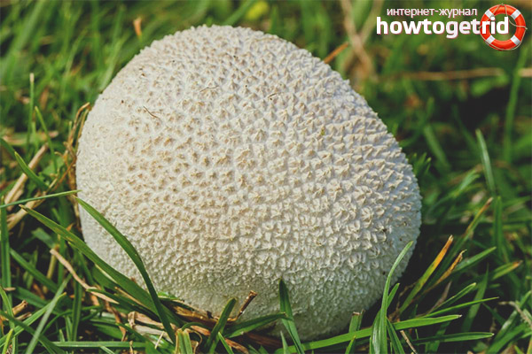 Характерна особеност на този представител на царството на гъбите е сходството с топката, което се дължи на сферичната или крушообразна форма на плодовото тяло. Горната му част има сплескване, върху което е разположен отвор, наподобяващ процеп, за сиво-зелени спори. Малките гъби (радиус на капачката - от 1 до 2.5 см, височина - 3.5 сантиметра) имат светъл цвят. Под плодното тяло е поставен добре набръчкан крак.Изрязването на гъбичките ви позволява да прецените достатъчно плътността на пулпа, мекотата на нейната консистенция и соковете. Протичането на времето влияе на степента на мекотата на гъбичките (по-младите, по-солидните).