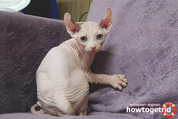 - Поради липсата на вълна, коженият палф се нуждае от по-задълбочена грижа.Тези котки се характеризират с прекомерно изпотяване, така че е необходимо да се премахне излишната пот ежедневно с мека, влажна кърпа или салфетка.