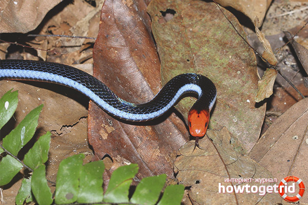 - Отличителната характеристика на влечугите от този вид се счита за брилянтна червеникава опашка и същият цвят на коремната част с главата. Името на сорта, получено поради ленти със сини тонове, които се намират отстрани на кутията.