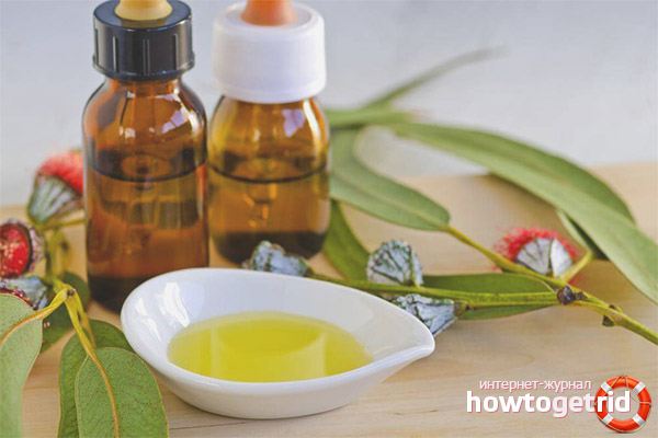 - За гъбички: горещата вода и евкалиптното масло се смесват в равни пропорции, след което тъканта се навлажнява с получения разтвор, нанесена върху възпаления и леко навита с чиста превръзка.