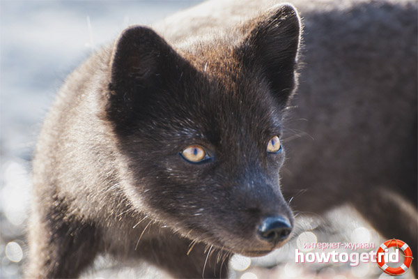Синята лисица е малък звяр от хищни животни, принадлежащи на членове на семейството на кучетата. На пръв поглед лисицата е много близка до лисицата, разликата е може би само в цвета на козината, както и в размера - лисицата е малко по-малка от червения хищник. В допълнение, този куче е по-крякан от лисица и има малко по-късо лице.Ушите на лисицата имат закръглена форма, те са почти невидими зад зимното палто на животното. Това предупреждава срещу измръзване през студения сезон.