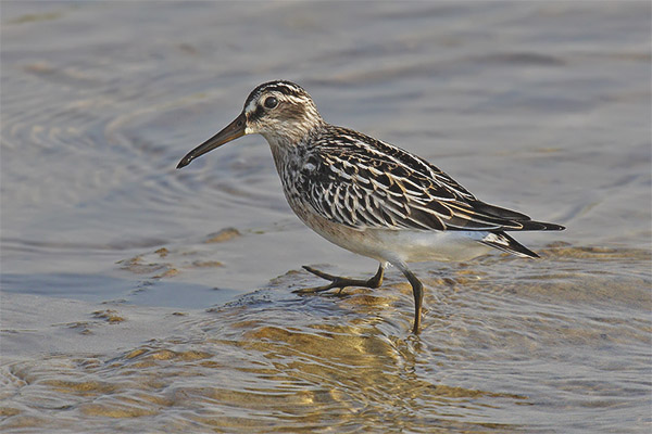 По размери тези птици са малко по-малки от старчетата. Тялото им е с дължина около 15 см, с размах на крилата от около 31 см. Представители на този вид са типични пясъчници по отношение на тяхната конституция. Но те се различават от останалите, тъй като на короната има ивици. Законопроектът е доста дълъг и масивен. А горната му част е леко сплескана и наведена надолу.