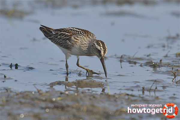 Ако птицата забележи опасността в близост до гнездото, тя започва да предизвиква разсейващи движения и да пищи. Той се храни с насекоми, червеи. Понякога яде ракообразни и мекотели. Може да яде семена от някои водорасли и растения, които растат близо до водата.