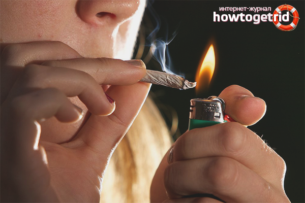 Най-често марихуаната се пуши от валцувани цигари от суха трева, добавяйки трева към епруветката. Понякога се добавя суха растителна добавка към чая. Действието започва почти веднага, веднага щом влезе в тялото токсини и отрови. След издуване, 15 минути не преминават, когато се променя съзнанието на пушача.
