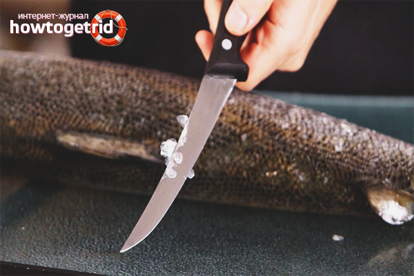 - Повечето заведения за хранене имат специален нож за почистване на риба. Неговите назъбени ръбове правят всичко за вас - това е удоволствие да почиствате рибата по този начин.