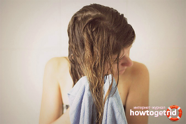 - В края на процедурата, прокарайте ръката си през косата си няколко пъти, за да изличите излишната вода. Увийте ги с кърпа, изчакайте 5 минути.