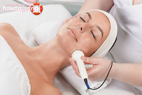- Основното нещо е да изберете Darsonval с подходящ пакет за лице ("гъба"). Що се отнася до технологията на процедурата, задвижете дюзата над лицето, следвайки линиите за масаж.
