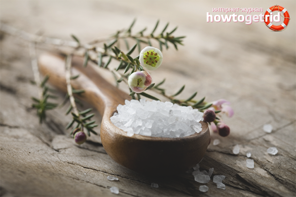 Във всяка голяма супермаркет се продава морска сол с различни аромати. Изберете миризмата на ела, туя, морски бриз, лимон. Солта се предлага в опаковки от 800 гр. и 1 кг. След придобиването си вземете 300 грама. композирайте и го раздробете по удобен начин, за да получите малки абразивни частици.