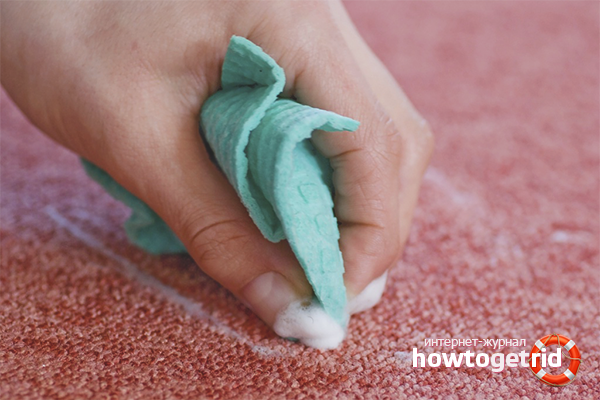След като съжалявате и срамувате кучето, трябва да направите премахването на петна.За да започнете, попийте течността с кърпички. Ако няма хартиени салфетки или кърпи на ръка, можете да направите това с кърпа за еднократна употреба или тоалетна хартия. Помага да се абсорбира течен пълнител за тоалетни на животни. Пълнежът трябва да се остави да попие течността, след което е необходимо просто да се вакуумира петната. Не трябва да разтривате урината с вода - ще я закарате в килима и ще бъде много по-трудно да се отървете от миризмата.