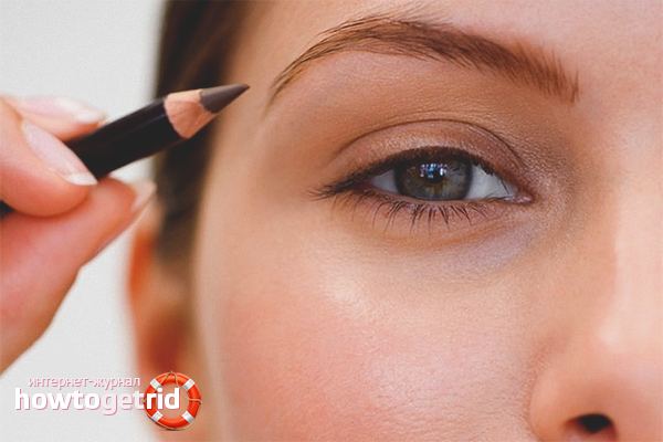 - Преди да започнете процедурата, изберете оптималната форма на веждите, като вземете предвид характеристиките на лицето. Премахнете излишните косми с пинсети, изчертайте контур на бъдещите вежди с молив с тънък прът.