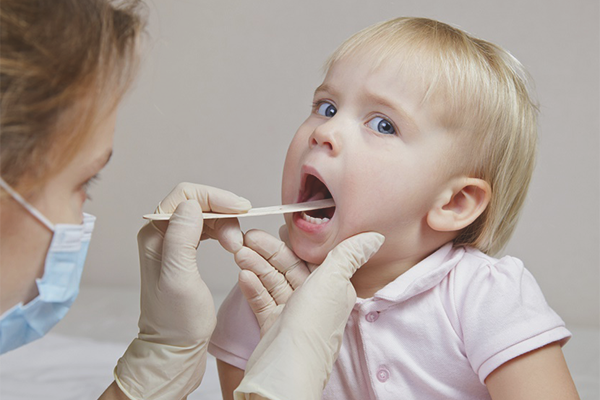 - Болката се съпровожда от възпалено гърло, възпалено гърло, дискомфорт при поглъщане. Гърлото, когато се гледа червено, възпалено. Детето може да се оплаче от дискомфорт в гърлото.