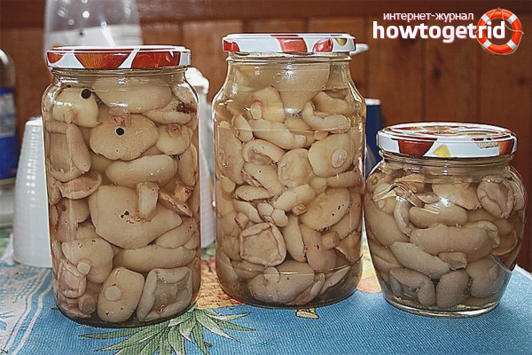 - Разбъркайте съставките, изключете нагревателя. По обичайния начин, пакетирайте гъбите в стерилни буркани, налейте в туршия, корк. Загрейте с кърпа, охладете, изпратете на студено.