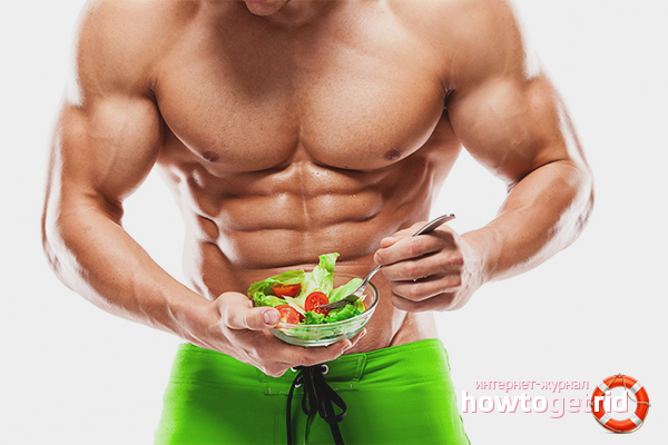 За да растете интензивно мускулите, трябва да обърнете специално внимание на храненето. Нейната база трябва да бъде протеин. Протеиновите храни трябва да са повече от половината от диетата на спортиста. Ако сутрин и обяд можете да си позволите някои въглехидрати под формата на зърнени храни и плодове, вечерта трябва да има чиста протеинова вечеря. Вино сирене, парче птиче или риба, зеленчукова салата - идеална.