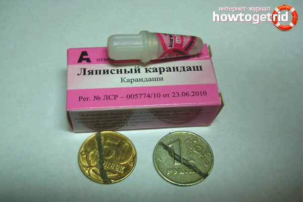 Можете да го купите в аптека.Умори предмета, който ще бъде тестван с вода, и нарисувайте лента с лапис. Няма да има следи за златните бижута. Предимството на този метод е, че металът се окислява незабавно.