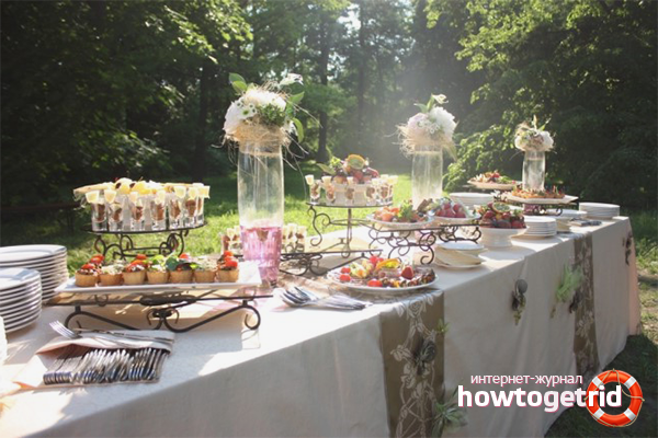 - Получете колкото е възможно повече метални части, за да украсите масата. Тя може да бъде стол за плодове и леки закуски, чинии със сребърна облицовка, прибори за хранене от естествено сребро.Благородният метал е много скъпо удоволствие, така че купете 1 комплект за себе си и предлагайте обичайните устройства на гостите. Не забравяйте чашите, украсете ги със сребърни панделки и поръчайте подходящия надпис.