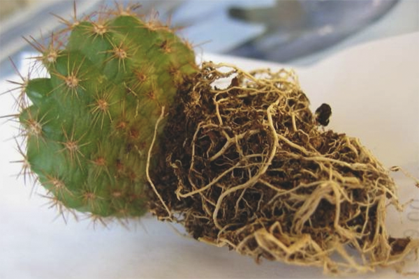 След 3-4 дни ризома се инспектира, отрязвайки изгнилите и изсъхнали издънки, съкращавайки гъстите издънки. Тънките струни не се докосват, защото благодарение на тях кактусът извлича хранителни вещества от земята.