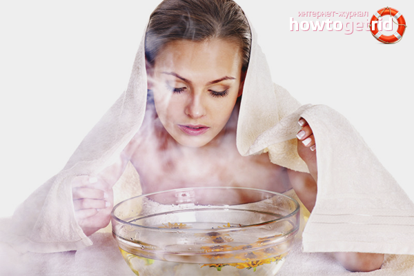 Сега сгънете листа няколко пъти и го покрийте с главата, за тази цел ще направите обикновена памучна кърпа. Затворете предната част на тавата и нейните страни, създавайки ефект на пара. Внимателно отваряйте капака, сложете лицето си, проверете температурата на пара. За да определите точно дали да продължите процедурата, задръжте китката над таза. Ако всичко е наред и нищо не пече, наклони лицето си над контейнера.