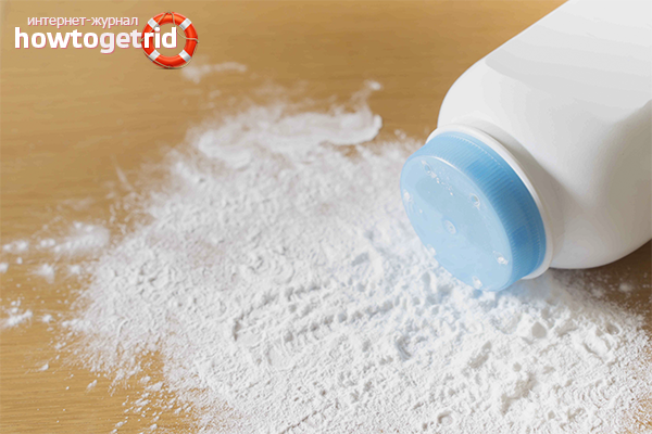 - Талкът може да бъде закупен в аптеката. Но ако нямате такава възможност, използвайте обикновено царевично нишесте или картофено нишесте. Технологията за обработка е идентична. Основното нещо в края на краищата е добре подготвеното кожено палто.