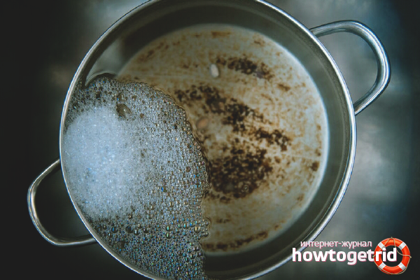 - Сода. Направете сода разтвор: около шест лъжици добавете към водата и оставете за една нощ. Сутрин кипете в продължение на един час.