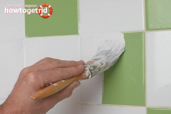 Стените и шевовете се обработват с лаково покритие и се оставят да изсъхнат за 12-14 часа. На следващия ден плочките са пребоядисани. Това ще отнеме най-малко 2 слоя емулсия, за да скриете цвета и шаблоните на стария плочки.