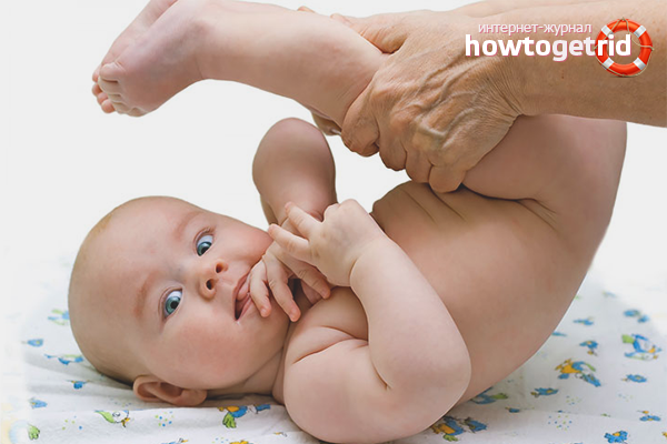 - Дръжте епруветката малко в това положение, след което, без да отстранявате върха, опитайте леко да натиснете коленете на бебето до корема. Това допринася за изхвърлянето на gazikov. Можете също така да масажирате корема по посока на часовниковата стрелка - по протежение на червата.