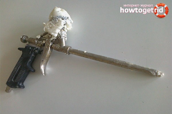 За да почистите пистолета, когато всички ремонтни дейности са приключили и няма нужда от монтаж на пяна, е необходимо да се развие цилиндъра с веществото (най-вероятно ще трябва да се изхвърли, ако не се използва за няколко седмици, тъй като след този период пяната вътре ще изсъхне , След това има две възможности за разработване на събития: