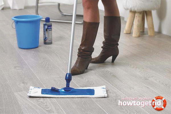Основната характеристика на грижата за покритието е, че е необходимо да се използват само специални продукти, маркирани "за ламинат".