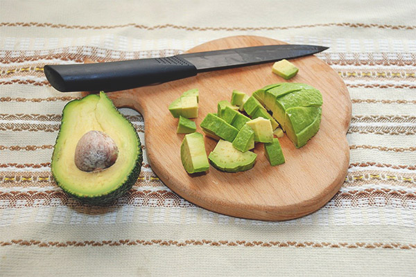 Лимонов сок е необходим, за да се излее и двете половини. В същото време те ще запазят оригиналния си естествен цвят. Формата на нарязване се определя от целта на авокадото за определено ястие. Тя може да бъде парче, кубчета, кръгове или друга геометрична форма.
