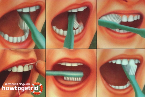 - Повтаряйте едни и същи манипулации отвътре, не забравяйте, че движенията трябва да "извадят" клъстерите и остатъците от храната. Отнасяйте алтернативно далечни зъби, като постепенно се движите напред.