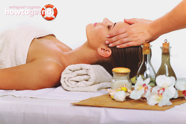 - Извадете кърпата и филма, масажирайте горната част на главата с двете си ръце в продължение на 10 минути. След това отидете в задната част на главата за около 5 минути, след това слезте до линията на косата на врата (5 минути). Завършете лечението с масаж на слепоочията (10 минути) и челото (3 минути).