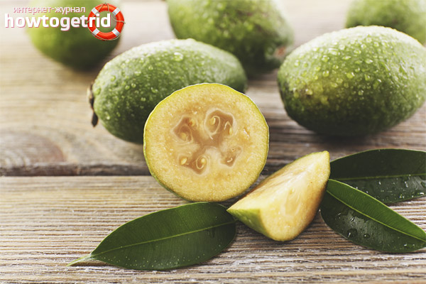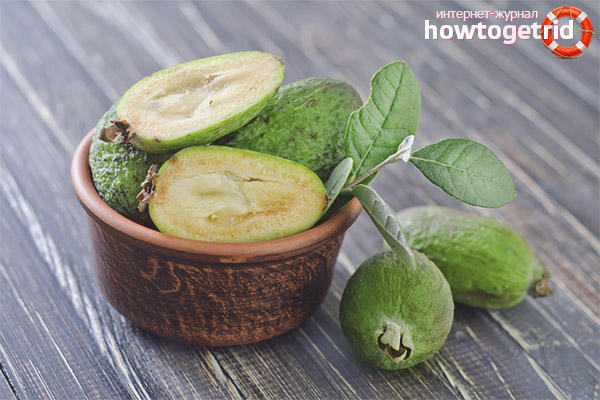 Feijoa е богата на витамин С, йод, калий и други полезни вещества. Редовното му използване в храната е много полезно за щитовидната жлеза и стомашно-чревния тракт. Като се вземат само 3 супени лъжици плодова каша на ден помага да се укрепи имунната система, да се намали кръвното налягане при хипертония и да се компенсира липсата на йод в организма.В допълнение, зърната подобрява храносмилането, стимулира правилното функциониране на бъбреците, почиства организма и нормализира метаболизма.
