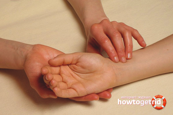 - Измерете импулса на рамото, когато той е разположен на височината на сърцето;