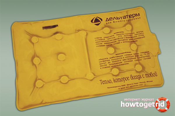 Солена гореща бутилка Delta-Term. Тя е предназначена за деца и има формата на мечка. Това е хипоалергичен PVF филм и натриев ацетат вътре. Солените кристали се загряват за секунди, нагревателят не се втвърдява. Не предизвиква дразнене на кожата. Може да се прилага върху корема или ухото на детето.