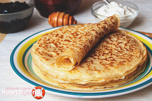 - Омесете тестото, изсипете растителното масло. Ако съставът е дебел, добавете още вода. На този етап е време да започнете пържене на палачинки.