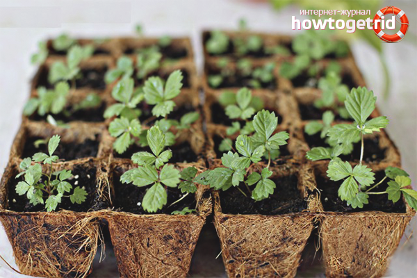 Един прост метод за отглеждане на култивирани ягоди е кълнове, направени от мустаци. През лятото растението образуваше издънки. Контейнерите се поръсват със субстрата и редовно се напояват, така че да се утвърдят. По-близо до падането, заготовката се отделя от майчиния храст с остри ножици или нож. Разсад копаят и инспектират, изберете здрави екземпляри.Жизнеспособните заготовки имат бели и еластични корени, добре развито ядро и най-малко 3-4 листа. Запушени и бавни гнезда са изхвърлени, няма да оцелеят през зимата. Корени от силни разсад се съкращават, оставяйки 6-7 см. Стреля преди засаждането се накисва във вода или стимулира растежа.