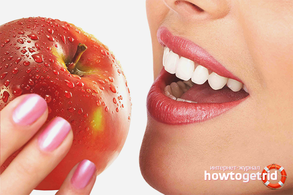 - Ако не можете да изплакнете устата си след хранене, трябва да завършите яденето с ябълка.Киселините, съдържащи се в този плод, почистват нападението и леко освежават усмивката. Но ябълките са спешни мерки, не можете да ги замените с пълна зъбна четка.