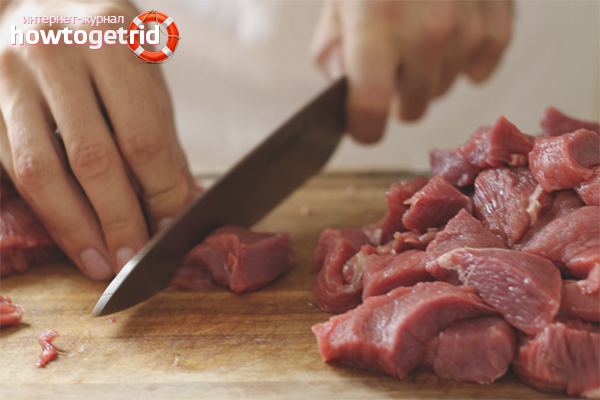 - Месото се препоръчва да се нарязват на парчета със среден размер. Малките образци са доста сухи. Големи парчета месо, на свой ред, не могат да се изпържат вътре. В идеалния случай се препоръчва да се нарязва месото във форми, наподобяващи конус.
