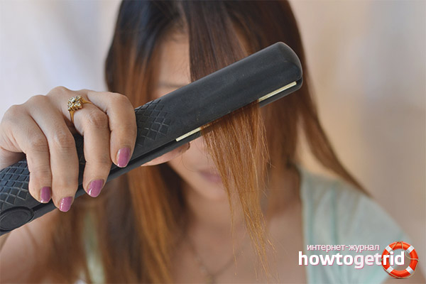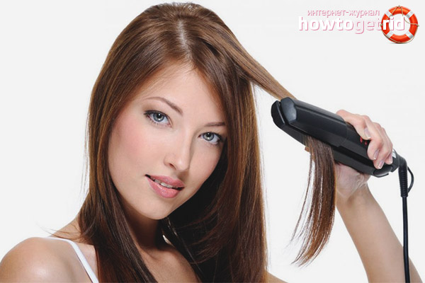 - След като направите пречистването на водата, изсушете добре косата. Овлажнявайте нишките най-добре със специални средства. Изправете косата от корена до върха, покривайки малки участъци.